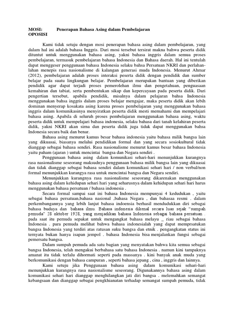 Final Debat Mosi Penggunaan Bahasa Asing Menurunkan Rasa …