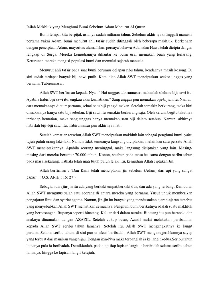 PENGHUNI BUMI SEBELUM NABI ADAM Disaat… - Sudah pahamkah anda …