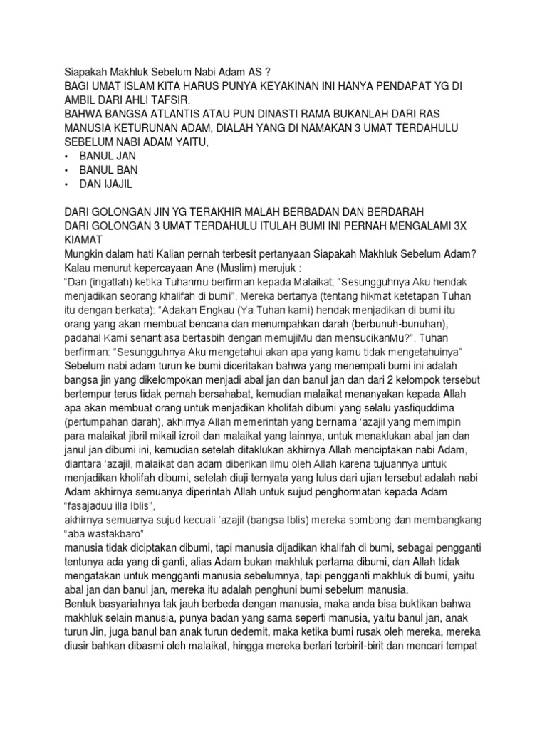Penduduk Bumi Sebelum Manusia Nabi Adam… - Adamo Vending …