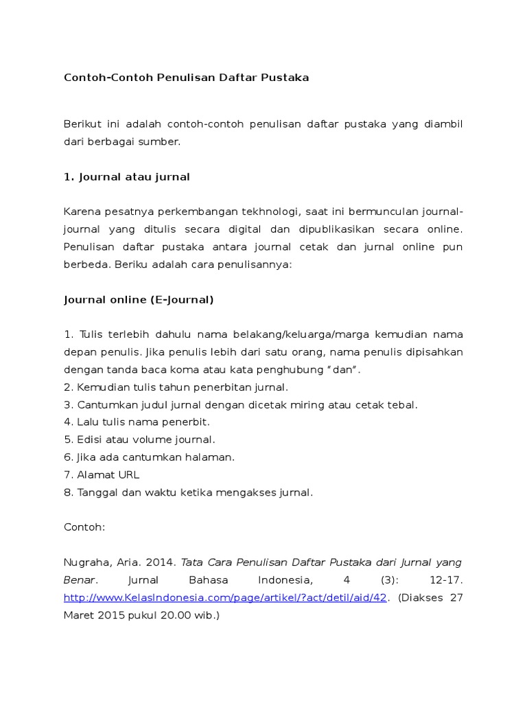 Cara Penulisan Dan Kumpulan Contoh Daftar Pustaka