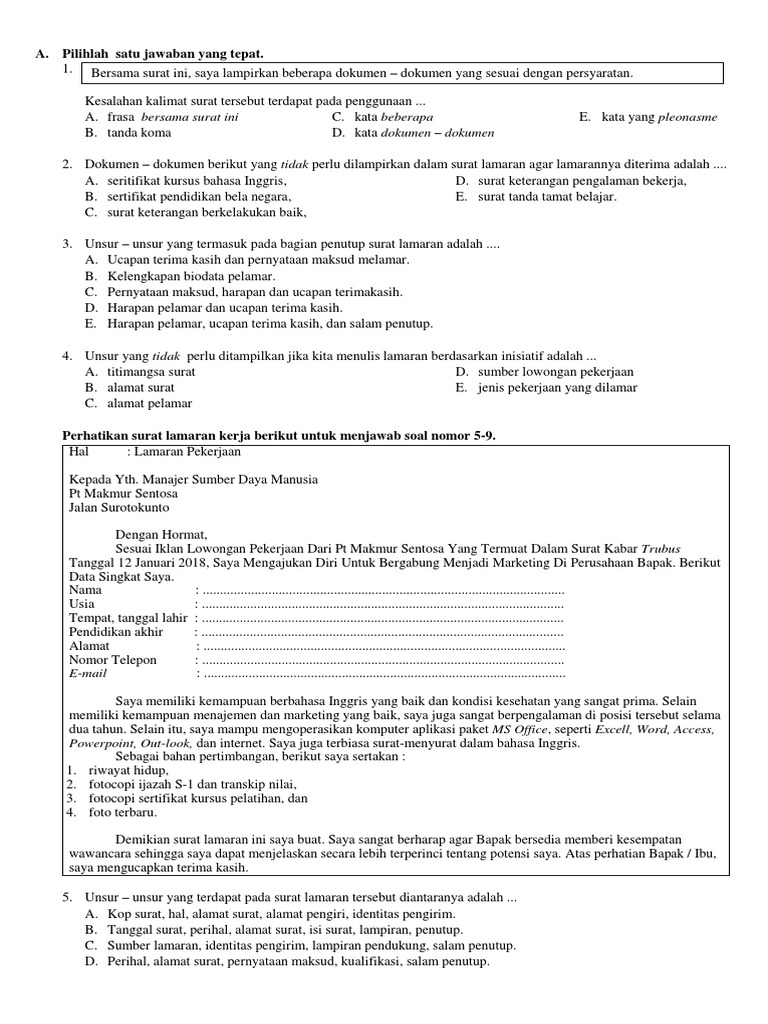 tuliskan dan jelaskan penulisan alamat surat lamaran yang sesuai …