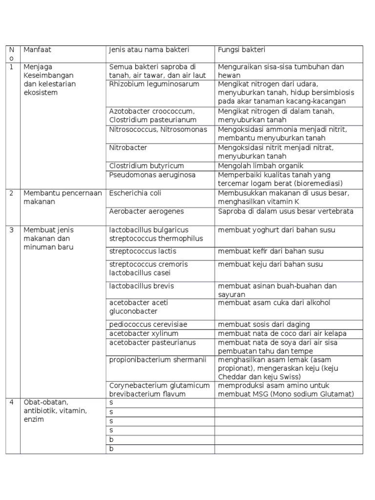 Tugas Biologi Bakteri Tabel Peranan Menguntungkan