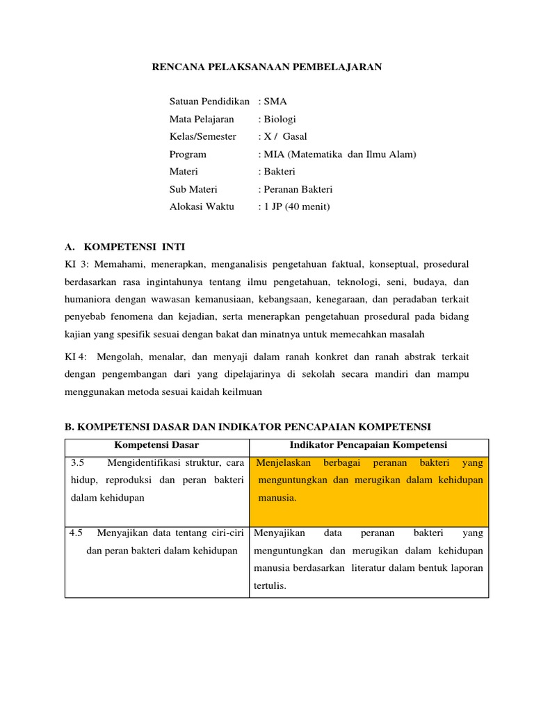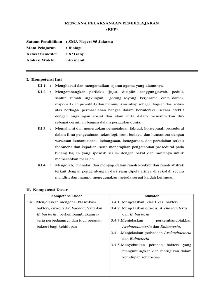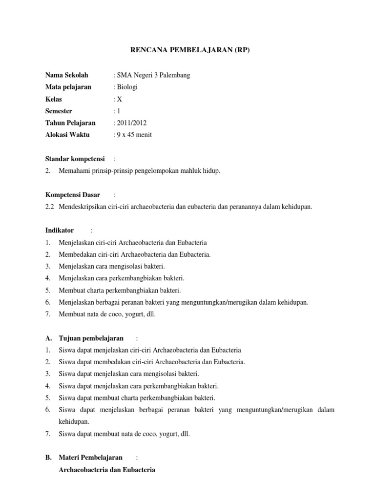 Rpp Dan Evaluasi Biologi-kelas-x-bakteri
