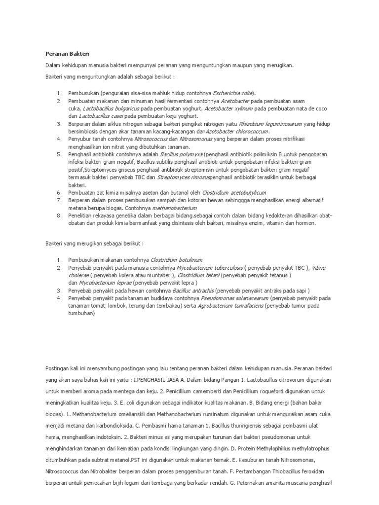 Bakteri Yang Menguntungkan dan Merugikan Manusia (Peranan Bakteri …