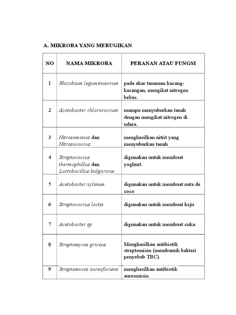 Jenis Mikroba Yang Menguntungkan Dan Merugikan