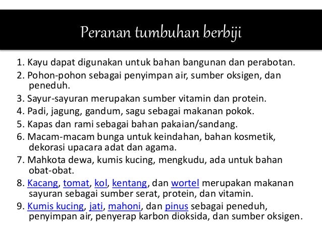 Sebutkan 5 peranan tumbuhan biji? - Brainly.co.id