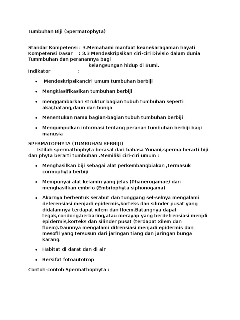 CIRI-CIRI, KLASIFIKASI DAN PERANAN TUMBUHAN BERBIJI (Spermatophyta …