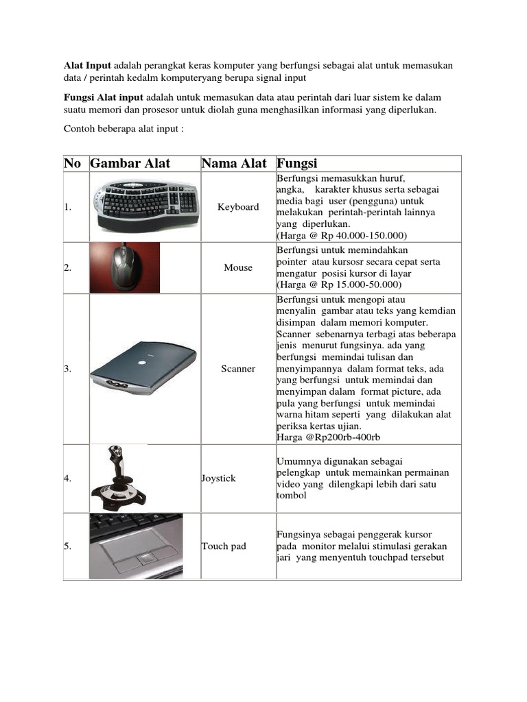 Alat Input Adalah Perangkat Keras Komputer Yang Berfungsi Sebagai Alat Untuk Memasukan Data