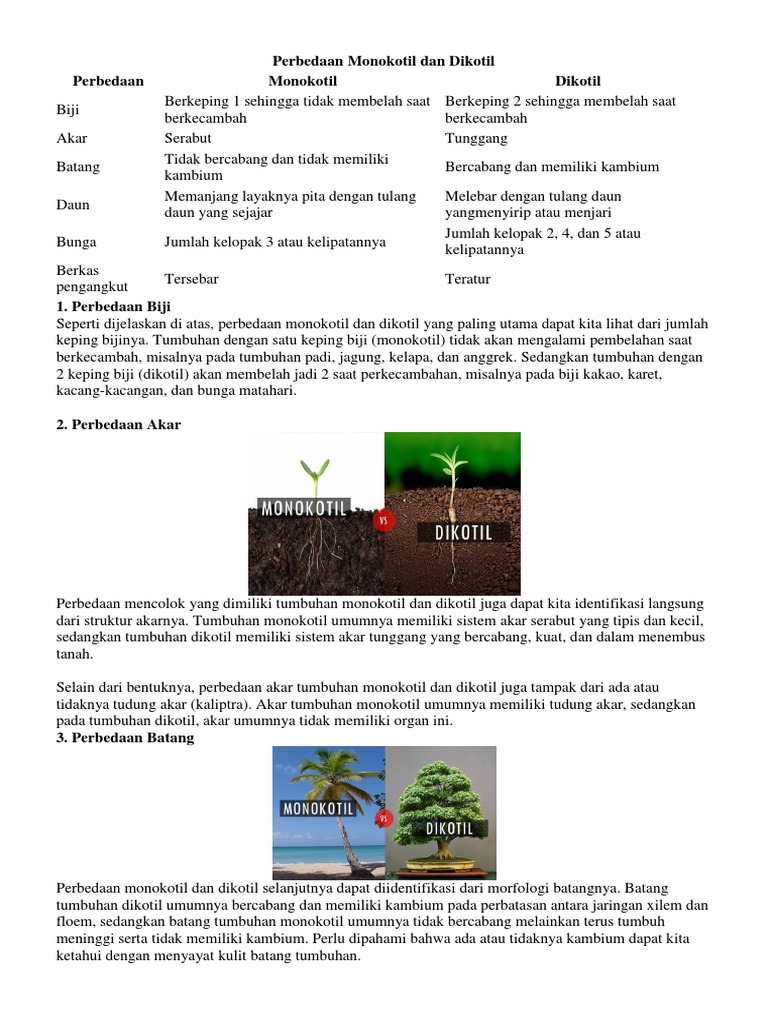 Perbedaan Dikotil Dan Monokotil Dalam Bentuk Tabel - Tips Membedakan