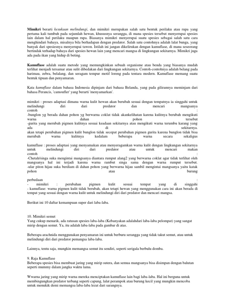 PENGERTIAN MIMIKRI DAN PERBEDAAN MIMIKRI DENGAN KAMUFLASE - E-JURNAL