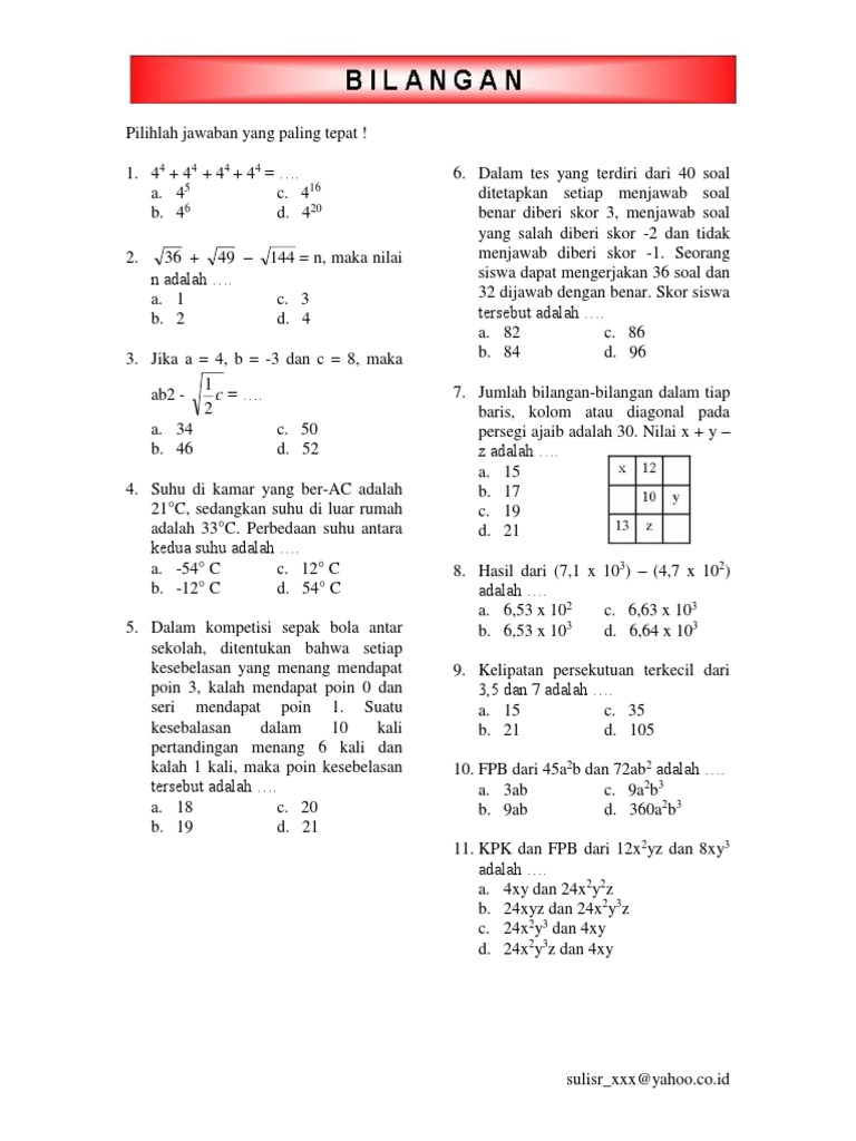 Matematika Menjawab: Soal Pilihan Ganda Aplikasi FPB Dan KPK Untuk Pembelajaran Matematika SD - Matematika Menjawab