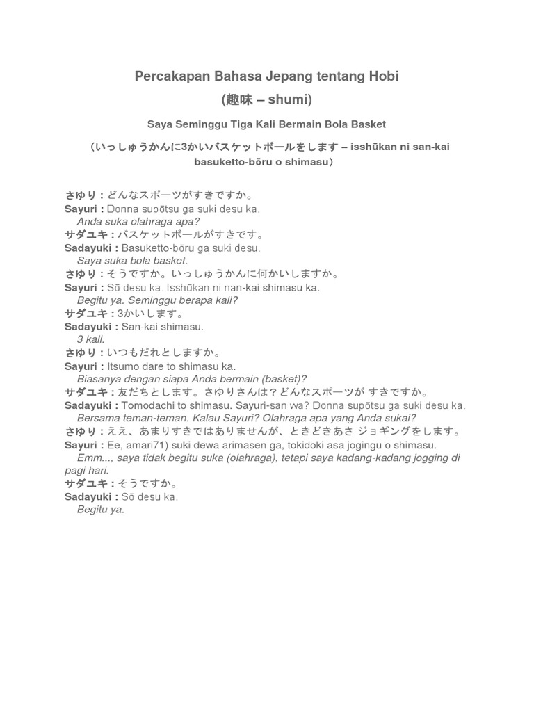 Contoh Percakapan Bahasa Jepang Tentang Hobi Bahasa Jepang Blog …