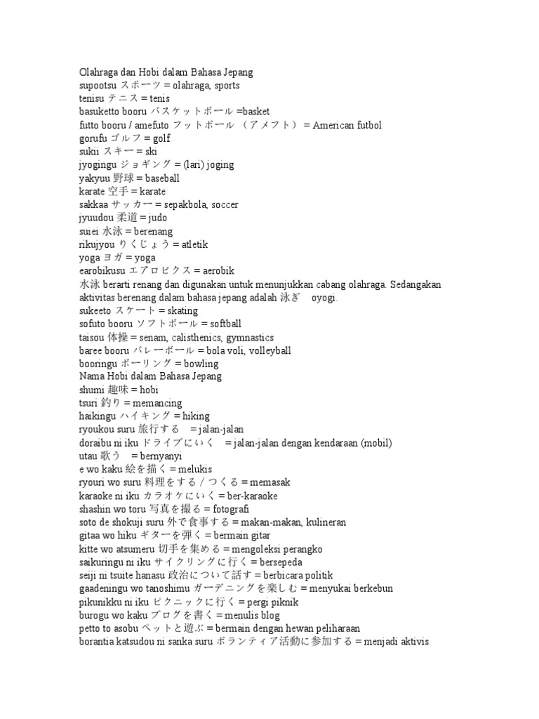 Olahraga Dan Hobi Dalam Bahasa Jepang