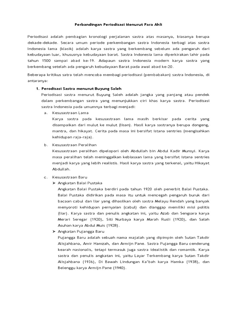 DOC) PERIODISASI SASTRA INDONESIA | Julita Pangesti - Academia.edu