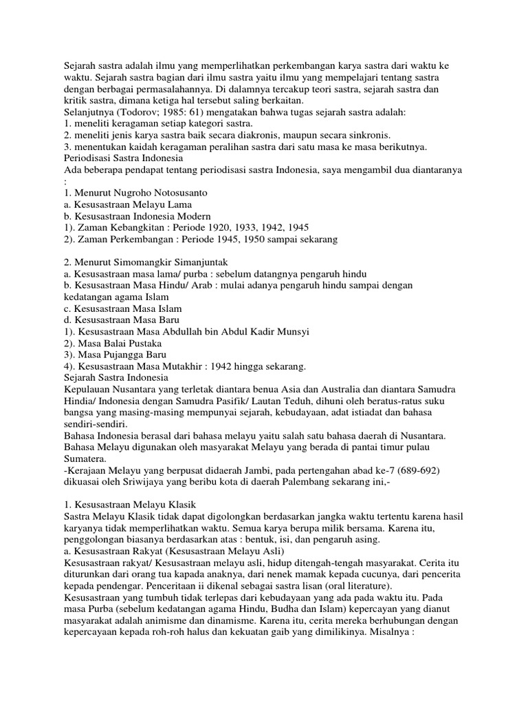 PDF) SEJARAH SASTRA INDONESIA DAN PERIODISASINYA | Fajar Fitrianto - Academia.edu
