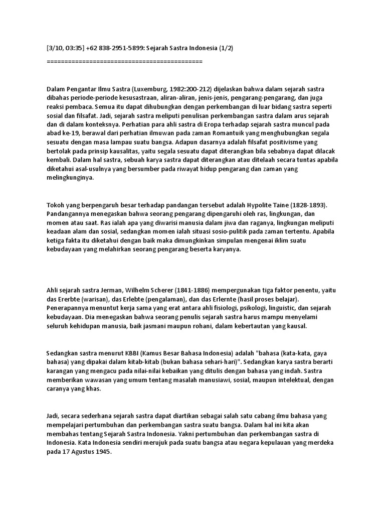 Kesimpulan dari Sejarah Sastra A