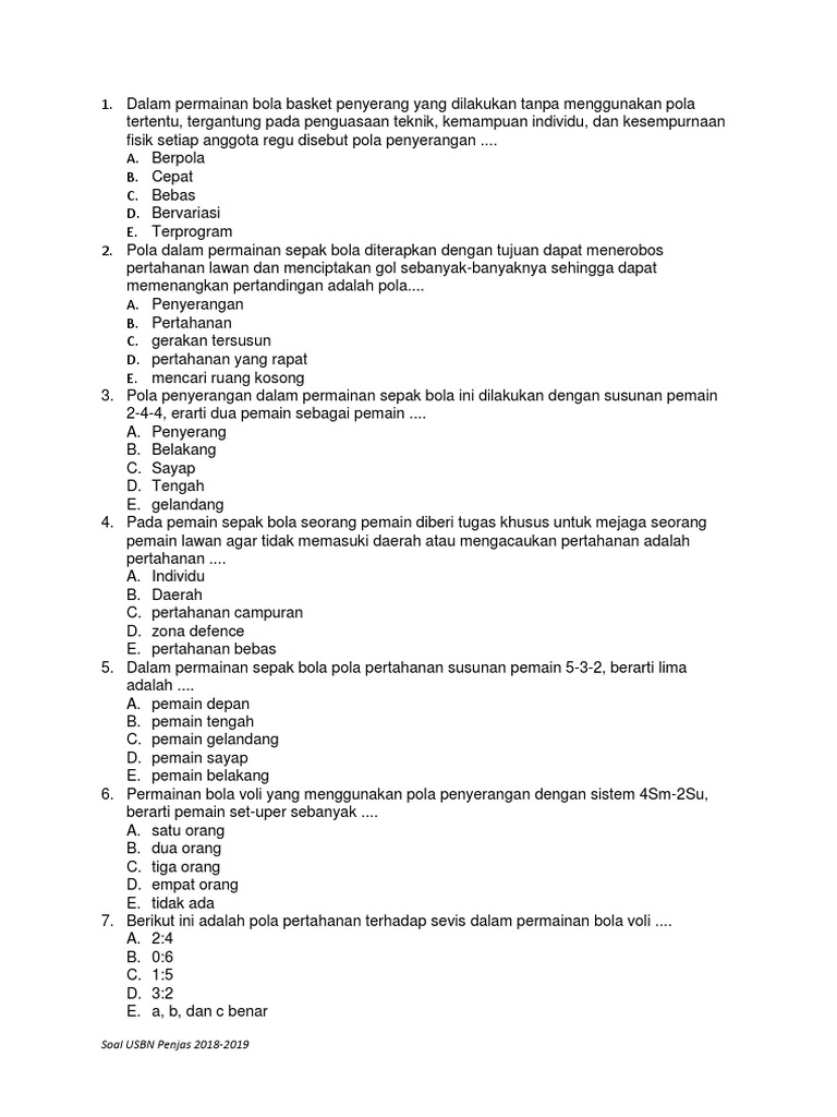 soal usbn penjas