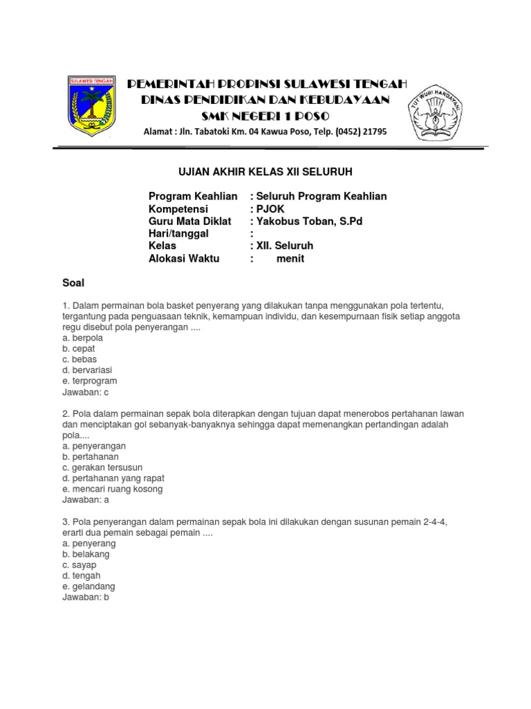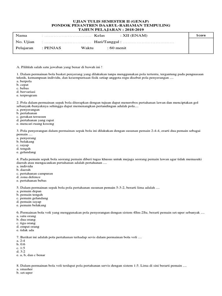 DOC) SOAL PJOK XII- | soni erec - Academia.edu