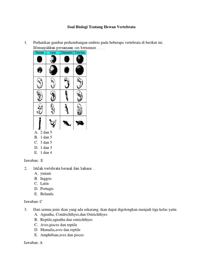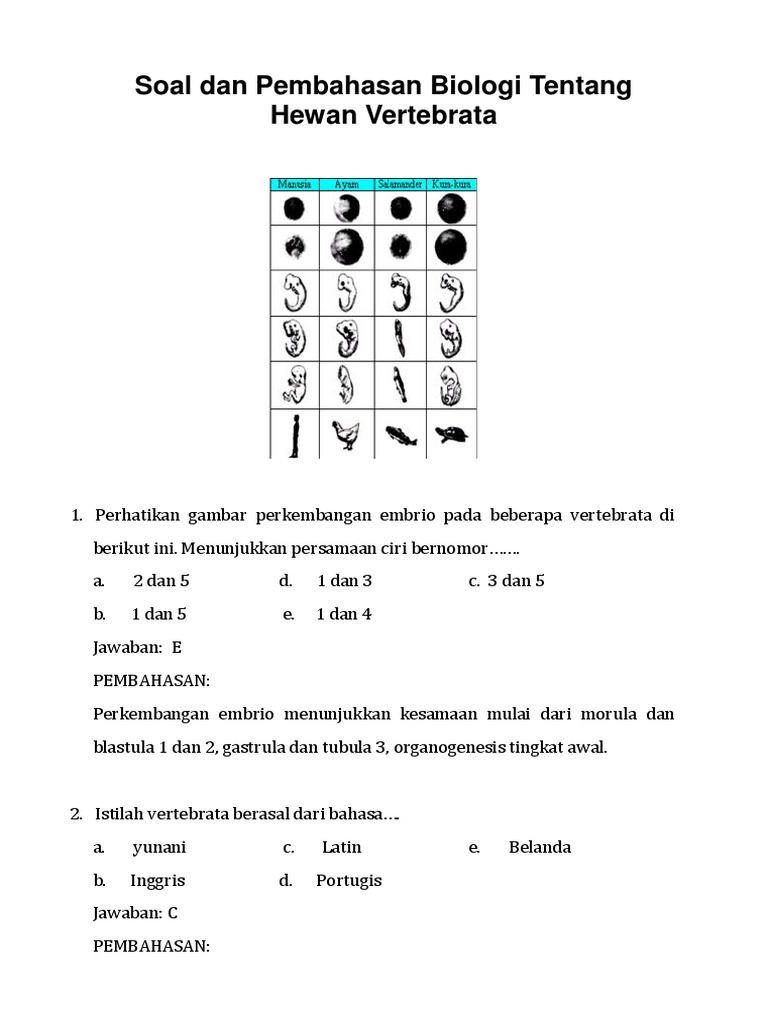 Soal Dan Pembahasan Biologi Tentang Hewan Vertebrata