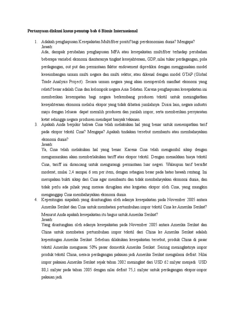 Pertanyaan Diskusi Kasus Penutup Bab 6 Bisnis Internasional