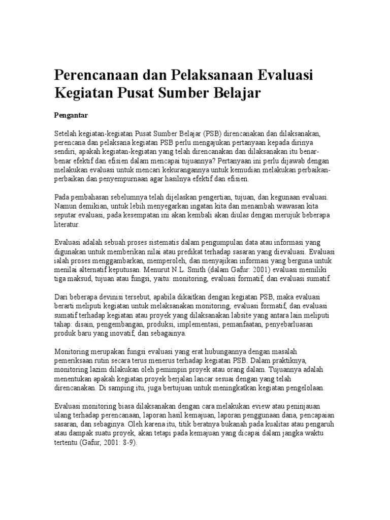 Perencanaan dan Pelaksanaan Evaluasi Kegiatan Pusat Sumber …