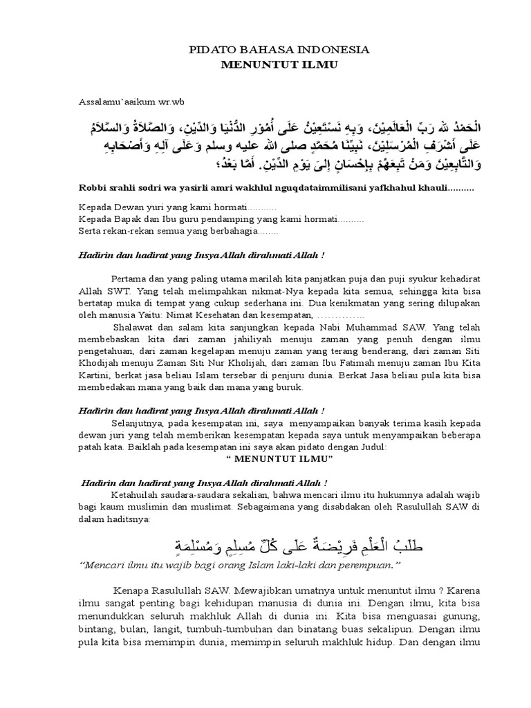 Pidato Naskah Tentang Pentingnya Mencari Ilmu - Teka Arab dan …