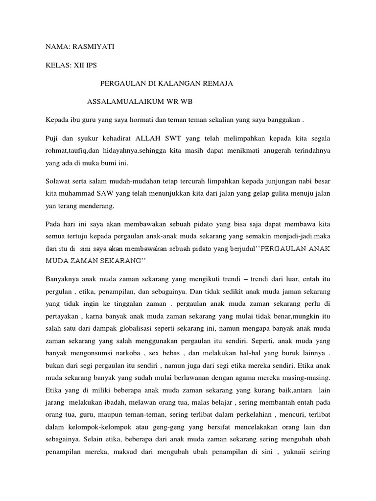 Contoh Teks Pidato Dengan Tema Pergaulan Remaja | ahmad fauzi - Academia.edu