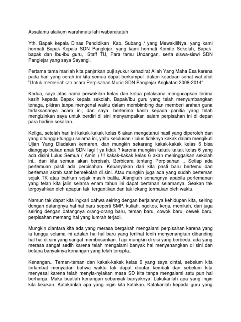 DOC) Pidato Perpisahan Kelas 6 | Charles Pardede - Academia.edu