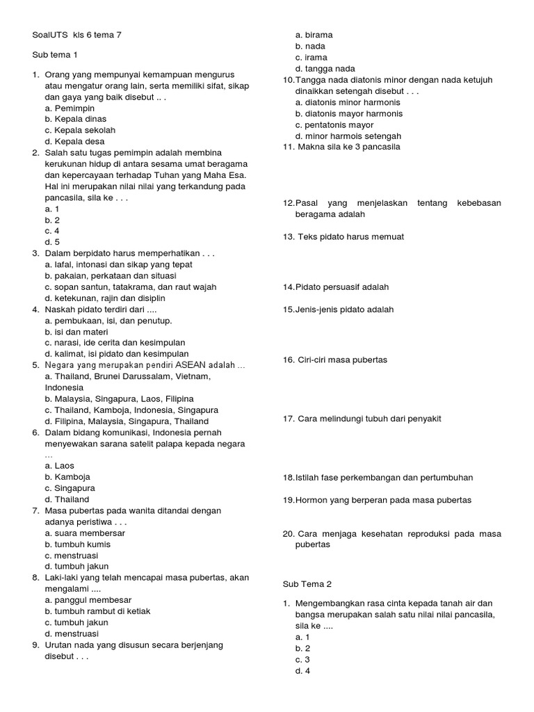 Soal kls 6 tema 7