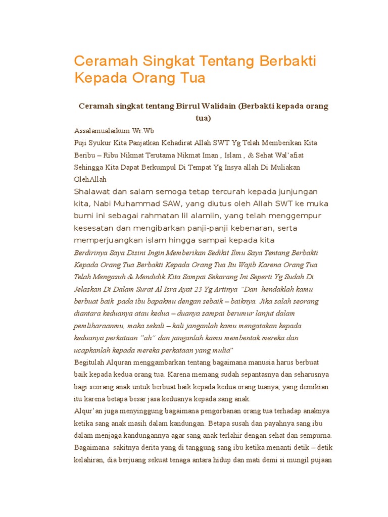 Contoh Teks Ceramah Singkat Berbakti Kepada Orang Tua [d47ewzw29dn2]