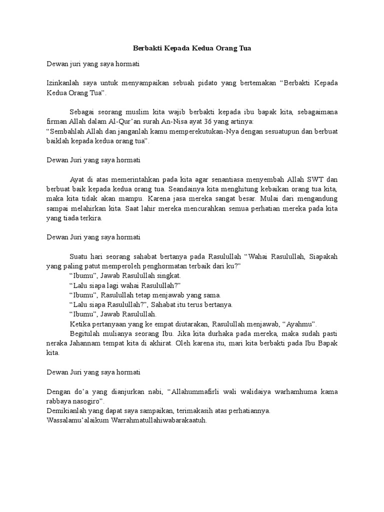 DOC) Contoh Teks Pidato Pildacil -Berbakti Kepada Orang Tua …