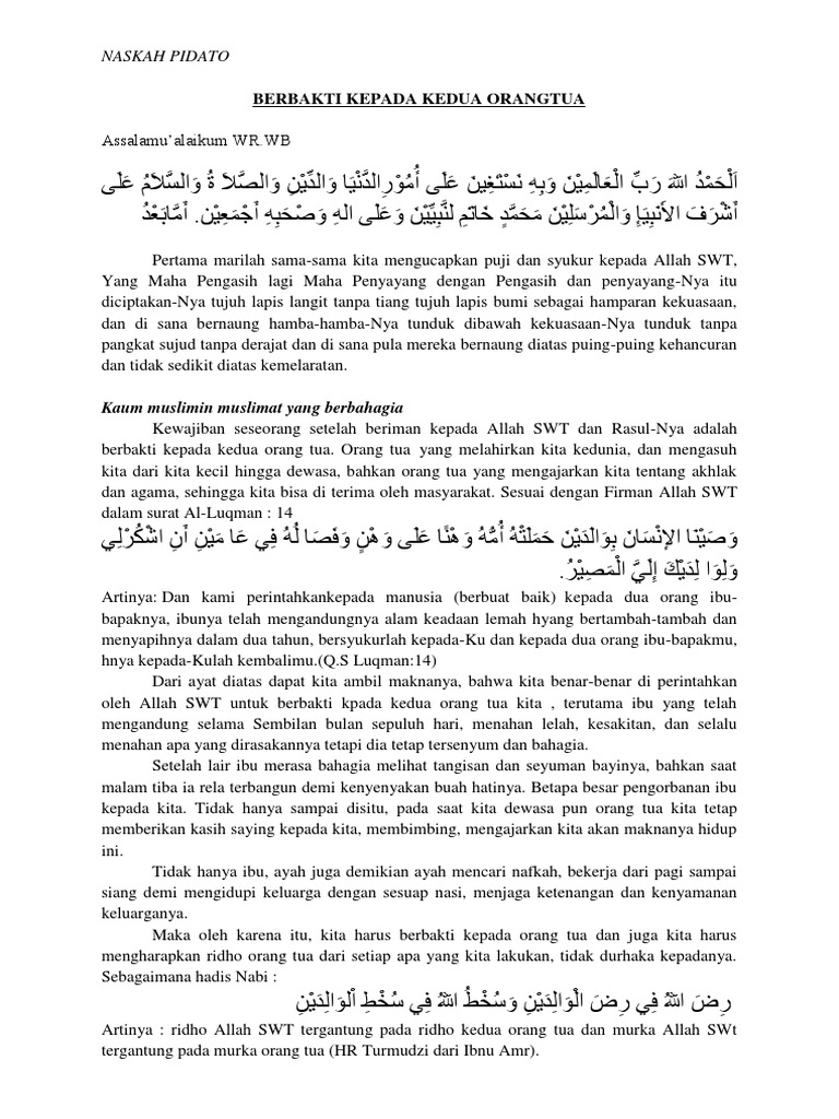 Teks Pidato Bahasa Arab Tentang Berbakti Kpd Orang Tua | Peatix