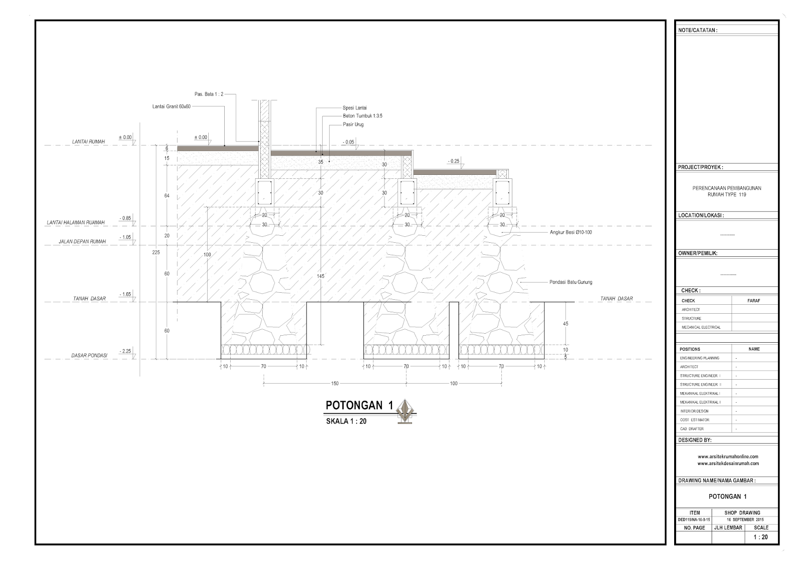 Denah Potongan Pondasi Rumah Lantai 1 ~ Jasa Arsitek Desain Rumah