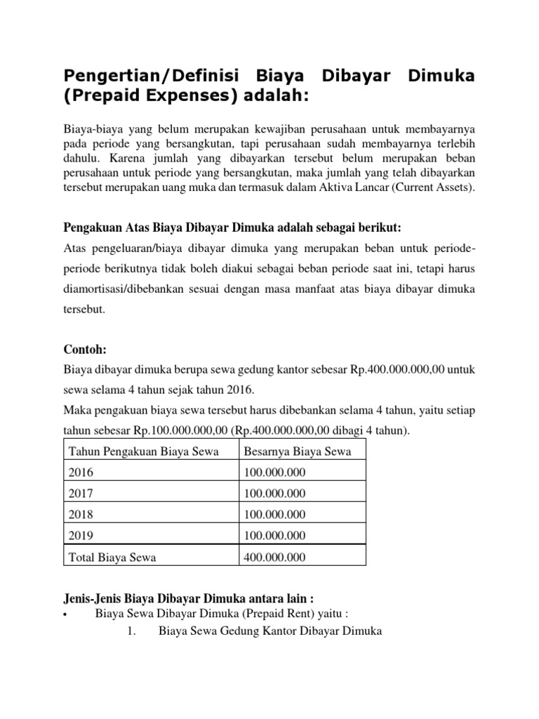 DOC) Pengertian/Definisi Biaya Dibayar Dimuka (Prepaid Expenses | try suherman - Academia.edu