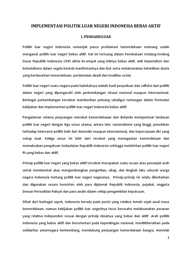Implementasi Politik Luar Negeri Indonesia Bebas Aktif: I. Pendahuluan