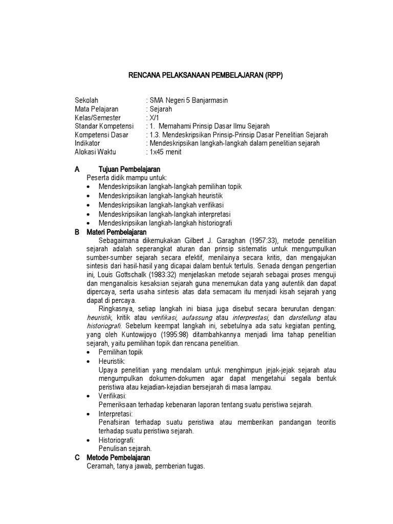 RPP Bab 3 Sejarah kelas X