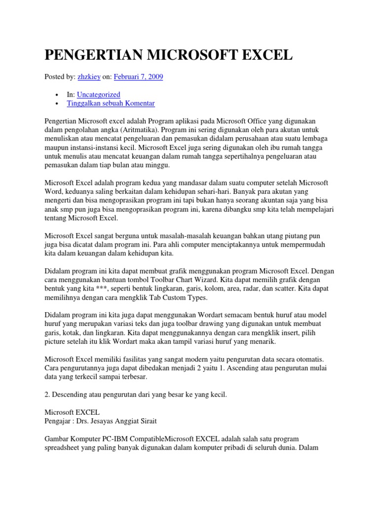 Pengertian Microsoft Excel: zhzkiey Februari 7, 2009 Uncategorized Tinggalkan sebuah Komentar