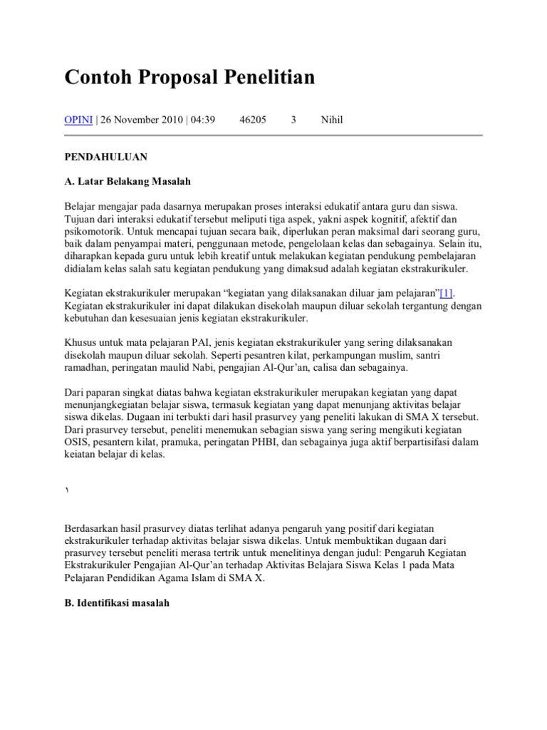 Contoh Proposal Penelitian Dan Kegiatan – IlmuSosial.id