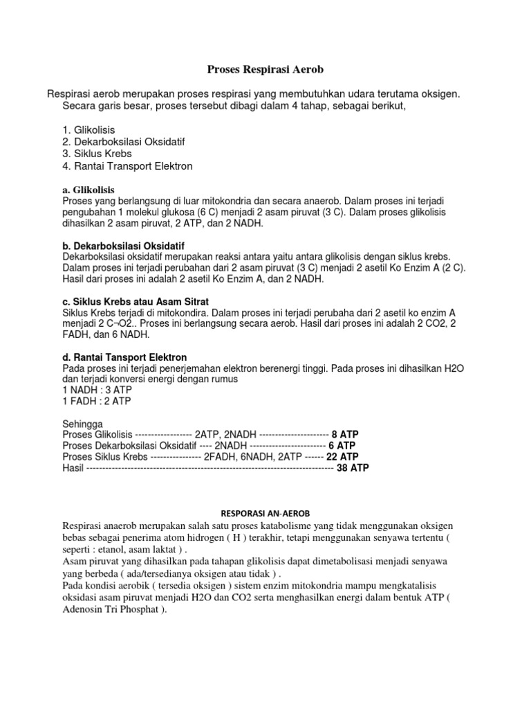 Contoh Tahapan atau Skema Respirasi Aerob dan Anaerob | Siswapedia