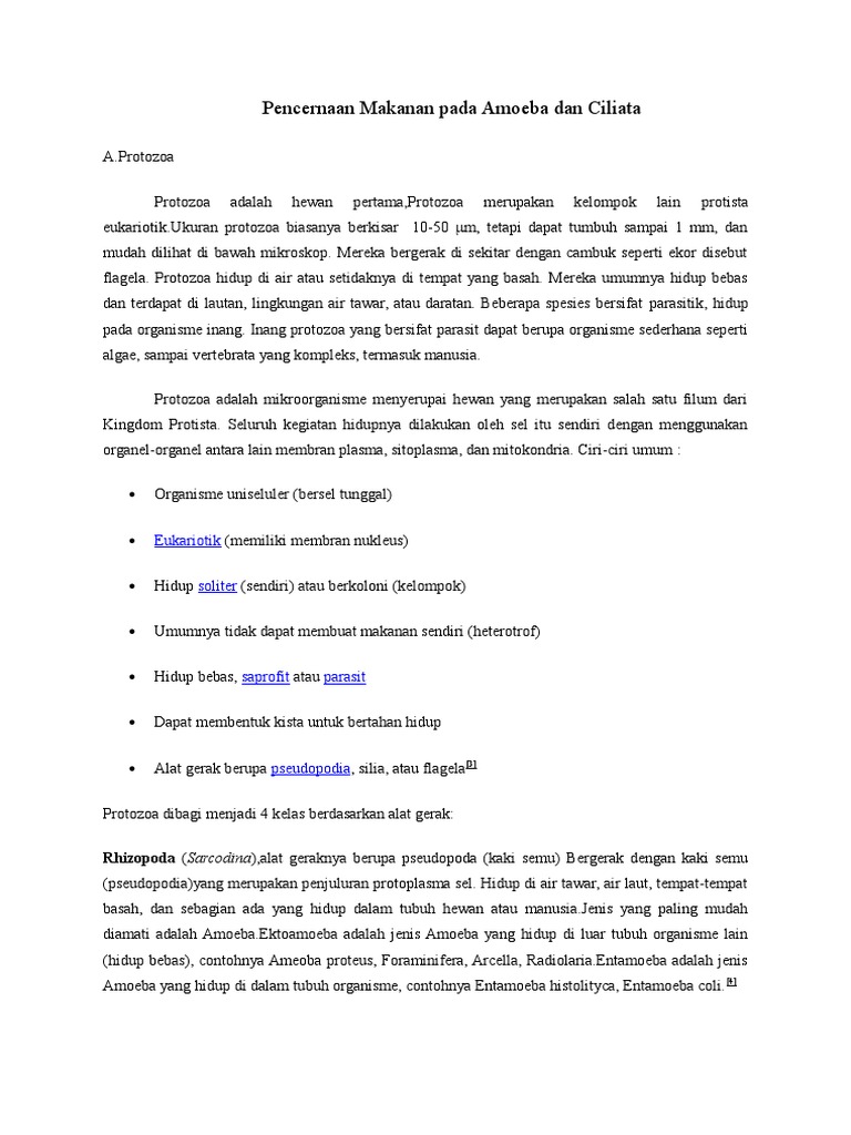 Pencernaan Makanan Pada Amoeba Dan Ciliata