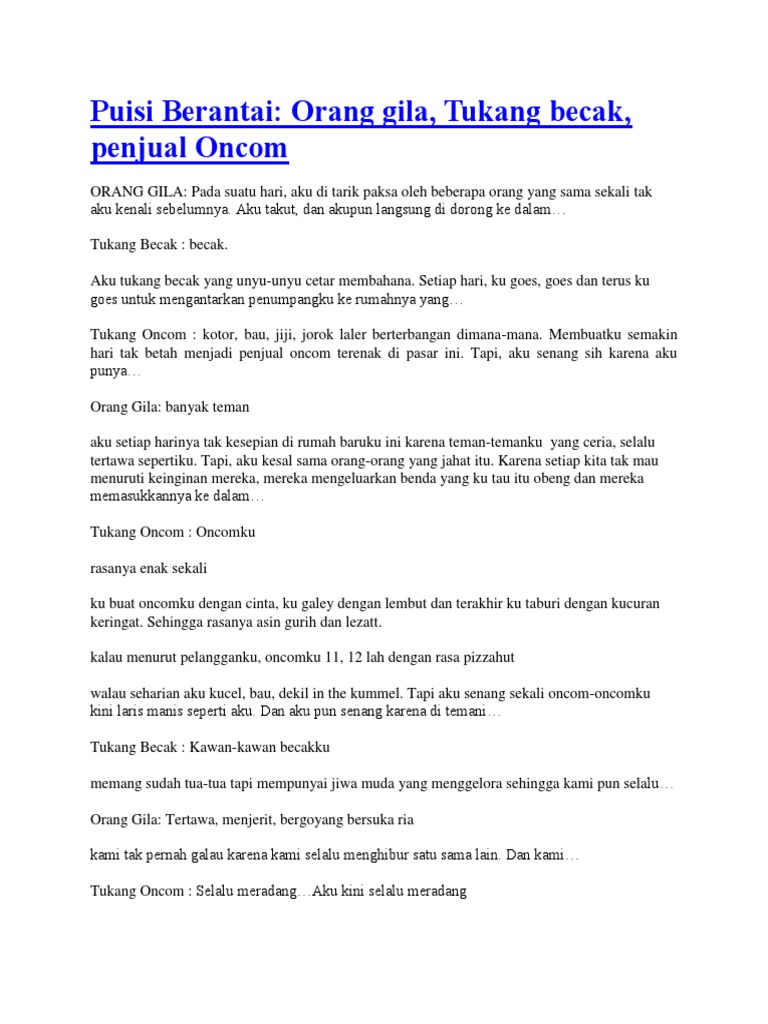 Puisi Berantai: Orang gila, Tukang becak, penjual Oncom