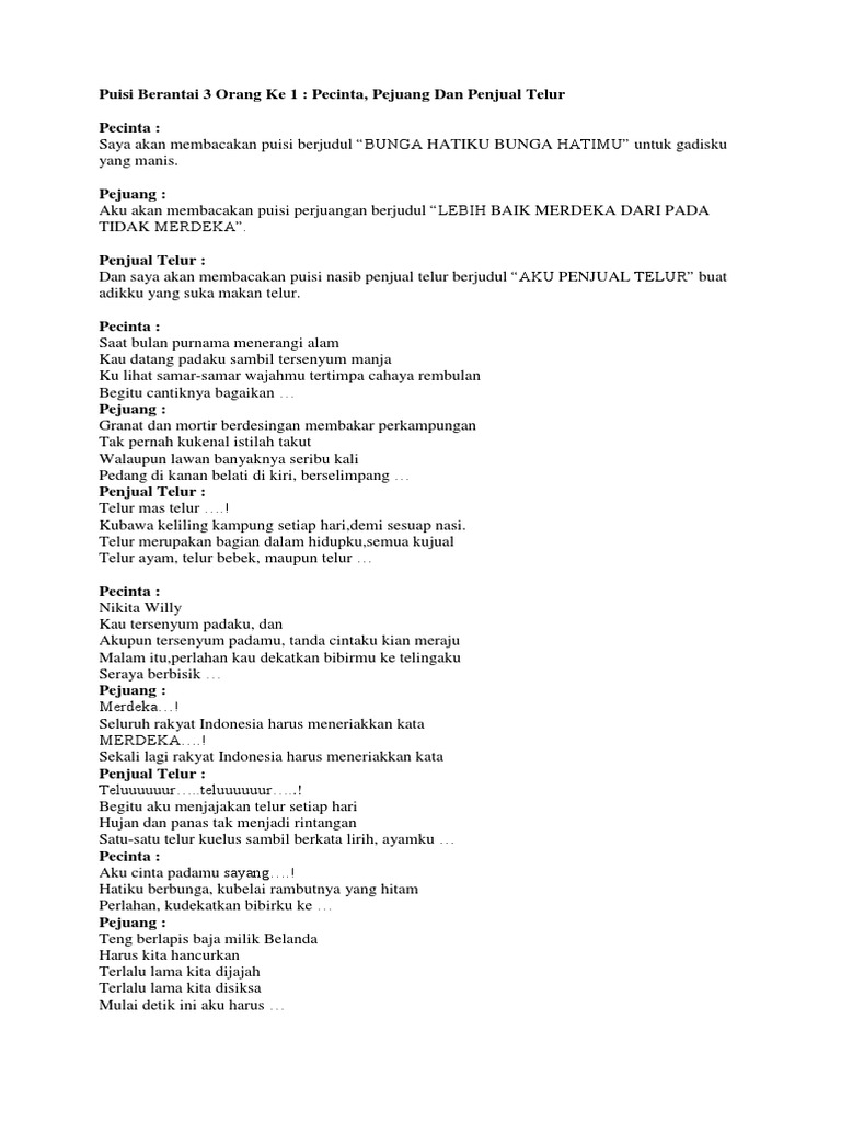 Contoh Puisi Berantai Tiga Orang | Belajar Puisi Dan Pantun