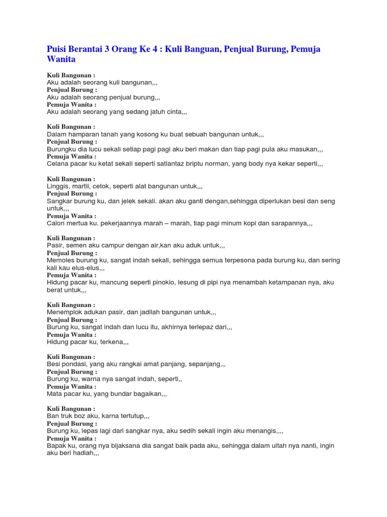 Teks Puisi Berantai 3 Orang Lucu - Berbagai Teks Penting