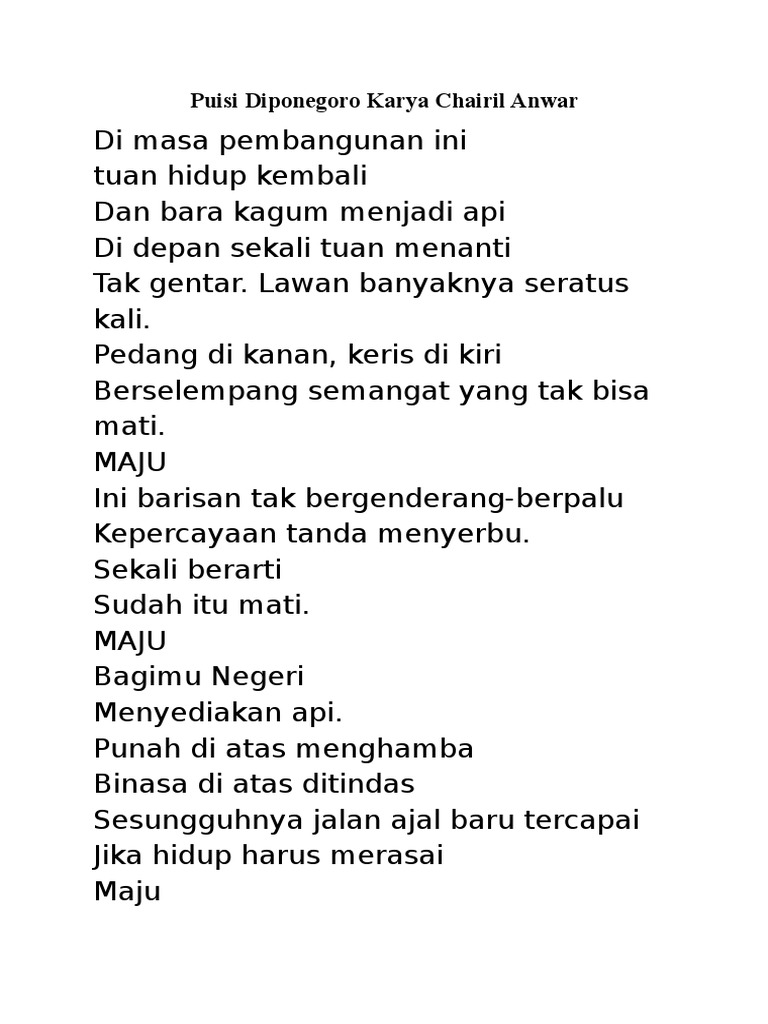 Puisi Chairil Anwar Diponegoro