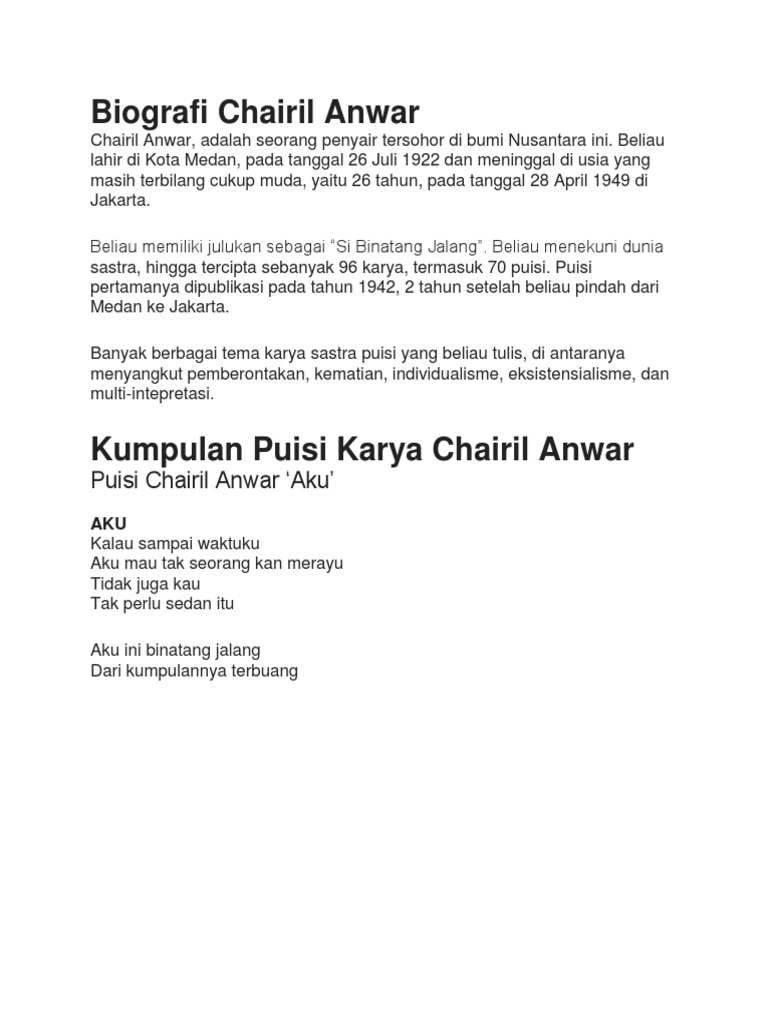PDF) Kumpulan Puisi-puisi Chairil Anwar AKU | Riki Ersanda …