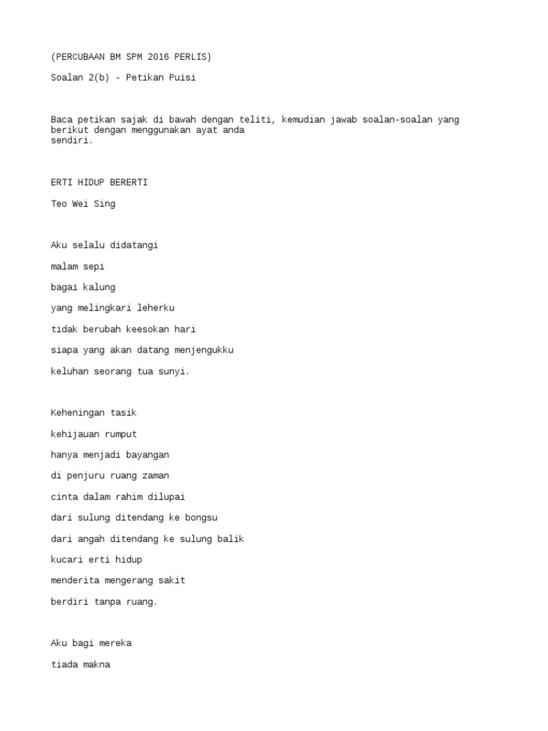 Koleksi Soalan Komsas 2d Puisi Moden