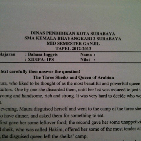 Guru Bahasa Inggris: Narrative: Queen of Arabia and Three Sheiks