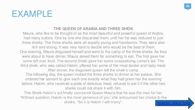 Example Narrative Text: Three Sheiks and Maura Queen in Arabian Story | English Admin