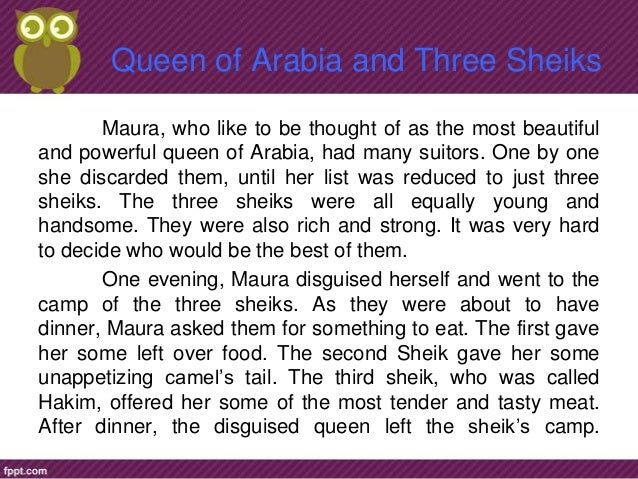 Teks Narrative Singkat Queen of Arabia and Three Sheiks | Tugas Sekolahku | Tugas Kuliahku | Karya Ilmiah | Laporan | Makalah | Bank Soal | Ujian | KIR