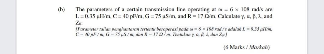 b) The Parameters Of A Certain Transmission Line … | Chegg.com